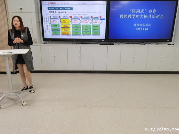 为进一步提升我院教师教学能力和水平,促进教师专业发展,努力锻造师德高尚、理念先进、教学设计优、教学效果好、教学能力强的专业教师队伍,现代商务学院在教师培养机制上不断推陈出新,提出“陪同式”参赛提升青年教师教育教学能力的做法,在近期学校各项比赛中,该做法已初显成效。