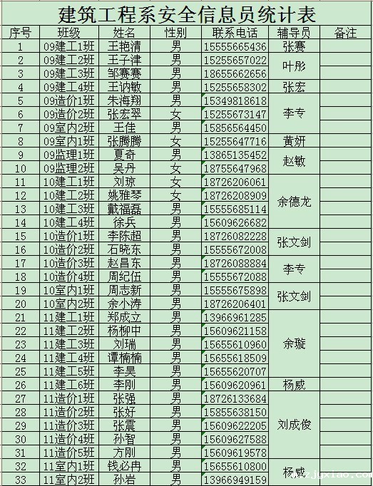 2010―2011学年度建筑工程系评优公示(2011年10月9日-10月12日)